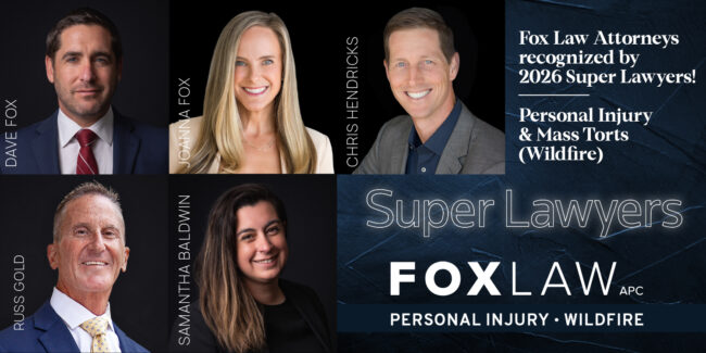 Fox Law Attorneys Recognized by San Diego Super Lawyers for 2026! Fox Law is proud to announce that Dave Fox, Joanna Fox, Chris Hendricks, Russ Gold and Samantha Baldwin were each individually recognized by San Diego Super Lawyers for 2026! Each year, no more than 5% of the lawyers in the state are selected to…